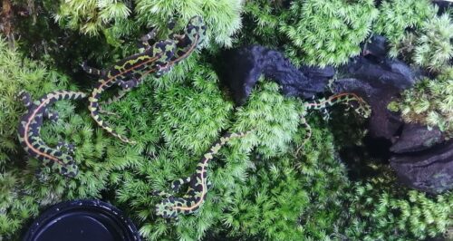 patoさん宅のファイヤーサラマンダー若い個体たちの飼育環境です。ミナミイボイモリの幼体たちも、似たような飼育環境でした。