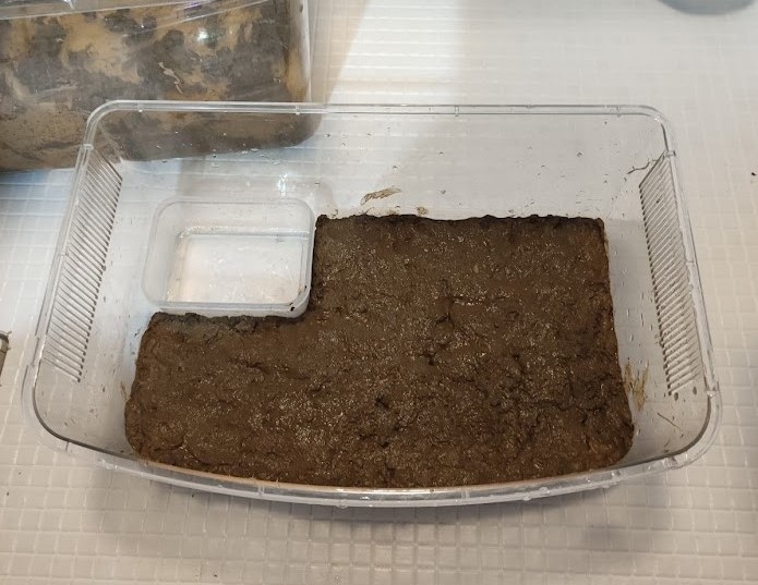 荒木田土とピートモスは保湿力のある土なので、すぐに床材の水分が蒸発せず、やや乾燥してるが水分も含んでいる床材として維持できる。